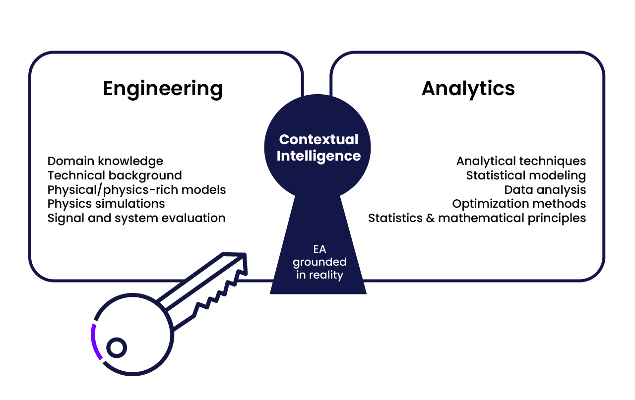 Engineering Analytics is the integration of engineering domain knowledge with data science techniques to optimize systems and processes. It enables contextual intelligence, i.e. understanding data not just statistically, but in relation to the physical systems in their real-world conditions. With contextual intelligence the features of a system can be better understood and can be tuned for or adapted to the characteristics of a specific situation and environment. It is all about interpreting data meaningfully — in a context.
