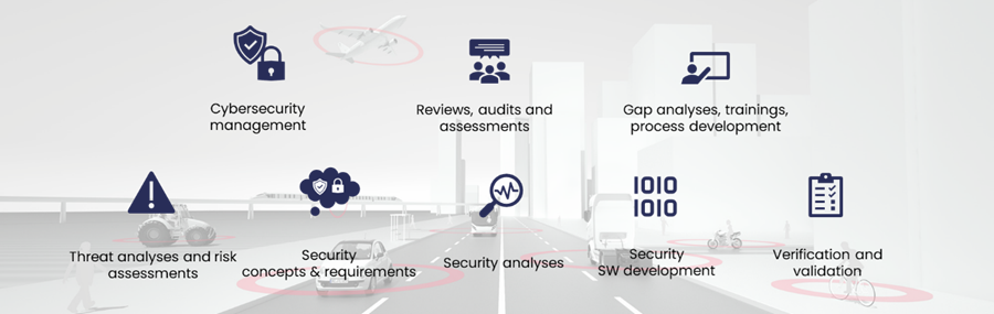 Figure 3 illustrates the core cybersecurity competencies at FEV.io. Specifically, our cybersecurity team may support you with the following activities: